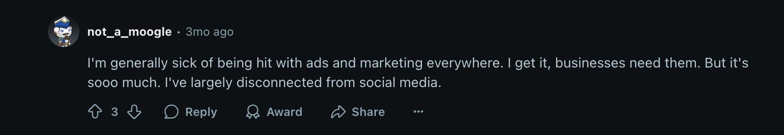 This struck the collective nerve. The comments are full of people echoing the same sentiment, clearly having been burned too many times, for too long.