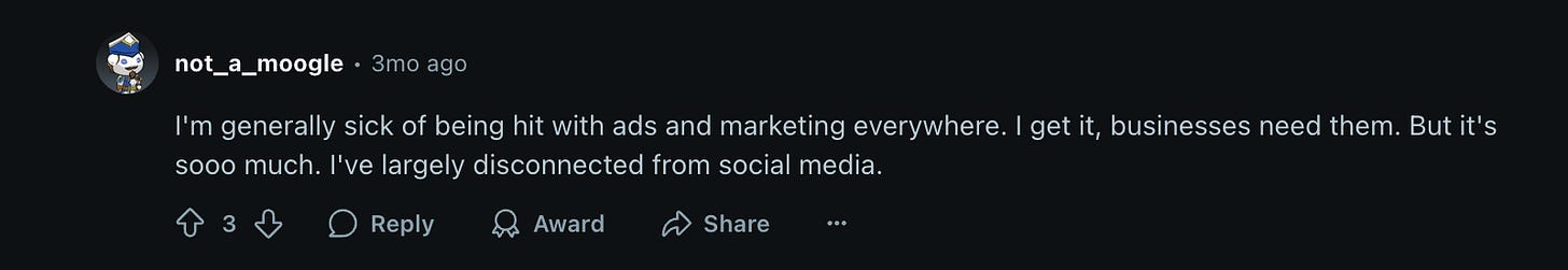 I’m genuinely tired of being sold shit at every corner of the internet. I wish I could just go back to making silly nonsense for my 5 friends on our geocities sites.