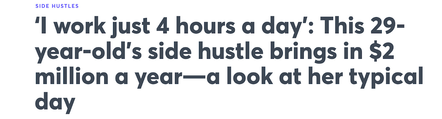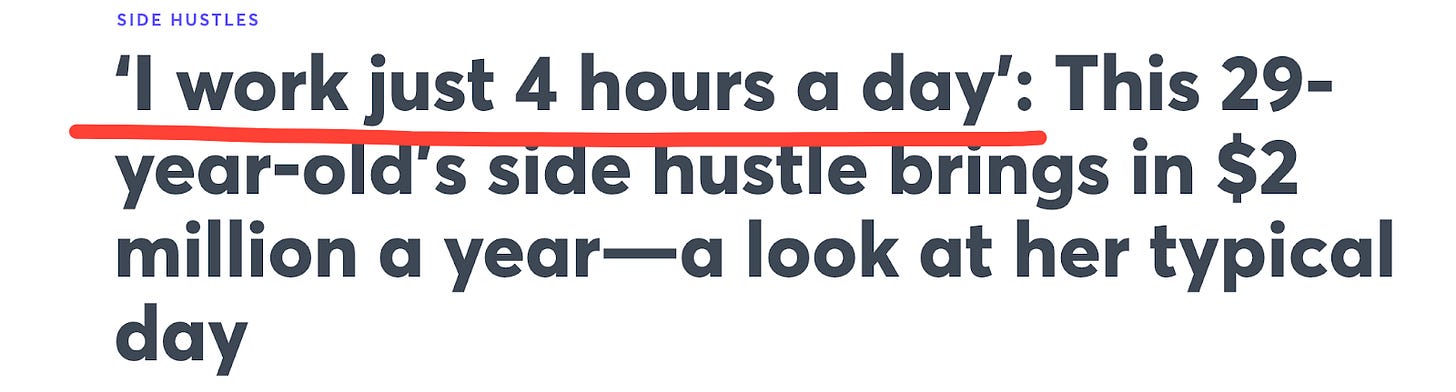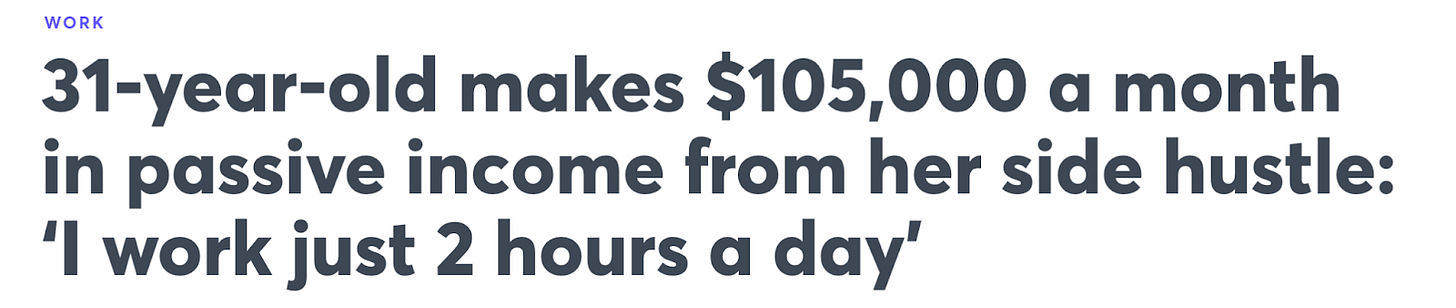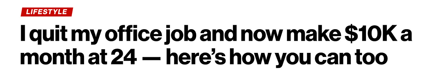 Of course, these headlines are true. Freedom is possible. A lot of people really have made it. I’ve seen the dashboards that measure revenue, plus media outlets require tax documentation as proof.