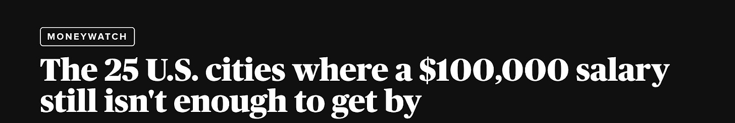 When an annual salary of $100,000, a milestone that once signaled middle class wealth and stability, isn’t even enough to live on in major cities…
